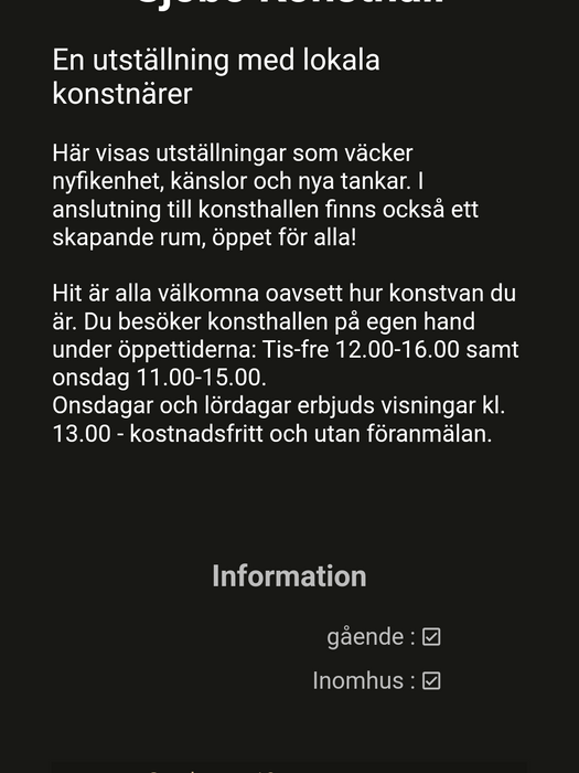 Den korta beskrivningen är begränsad till 75 tecken. Den visas i pop-upp fönstret på kartan och under besöksmålets namn i listan på besöksmål. Den långa beskrivningen visas enbart på informationssidan när man klickat på pop-upp fönstret eller besöksmålet i söklistan. Den kan innehålla mycket mer information så som vad ni har att erbjuda, öppettider. Lägger man dessutom till bilder så kan du göra ditt besöksmål riktigt inbjudande.